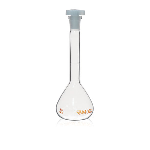 Kolba miarowa szklana klasy A 100 ml ze szkła borosilikatowego z plastikowym korkiem