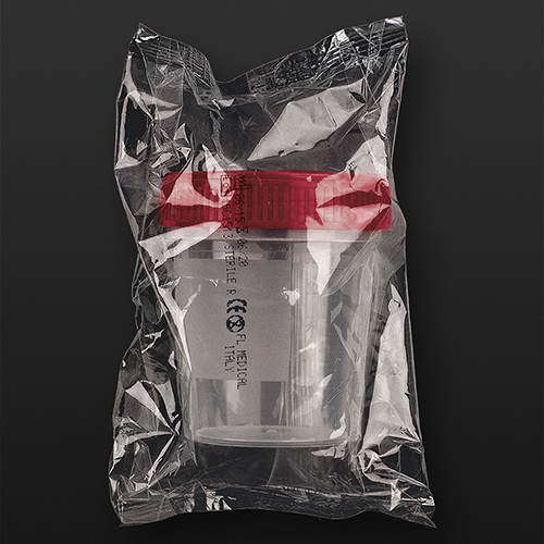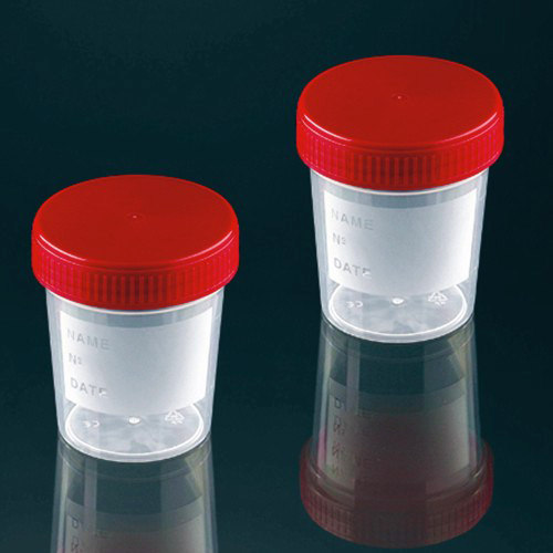 Pojemniki polipropylenowe jednorazowego użytku z nakrętką, na próbki moczu. W wykonaniu jałowym indywidualnie pakowane.