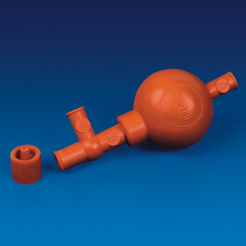 Ułatwia dozowanie płynów przy pomocy pipet szklanych. Zasysanie i wydalanie cieczy z pipety następuje poprzez naciśnięcie gumowej gruszki i ucisk na odpowiedni zawór.