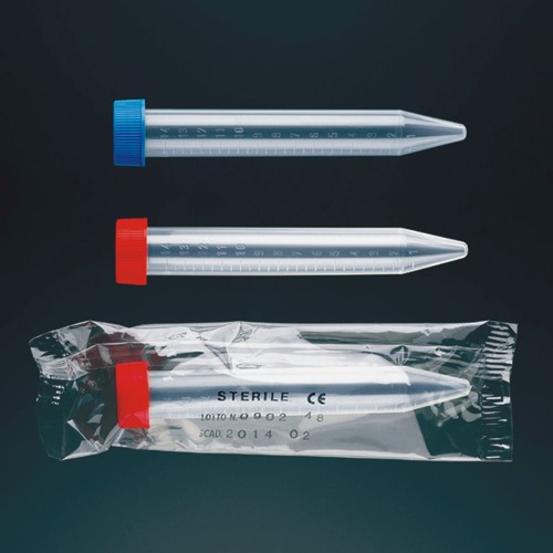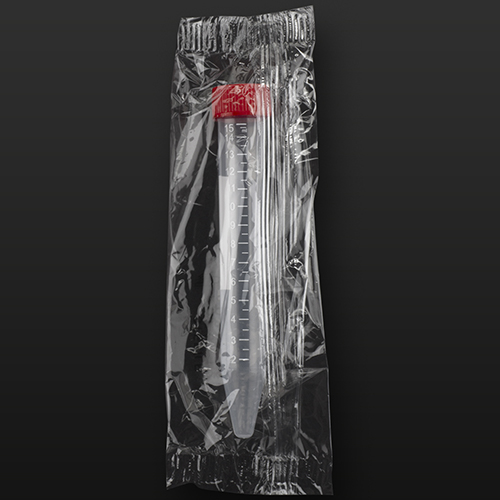 Probówka PP 15ml (17x120mm) stożkowodenna, skalowana, z czerwoną nakrętką, jałowa, indywidualnie pakowana (50szt)