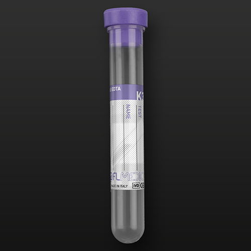 Probówki polipropylenowe ø13x75mm 5ml z gumowym korkiem i z etykietą, z EDTA-K3 (wersenian trójpotasowy). Odczynnik jest w stanie płynnym.