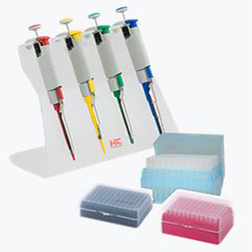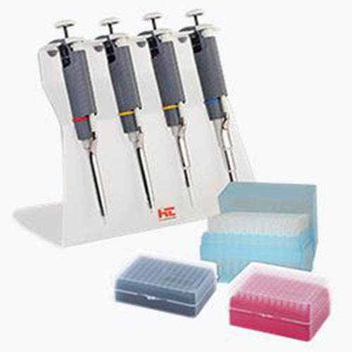 Labmate Pro Starter 4 Pack (mikropipety LABMATE PRO 0,5 - 10µl, 2,0 - 20µl, 20 - 200µl, 100 - 1000µl z kompletem końcówek i statywem)